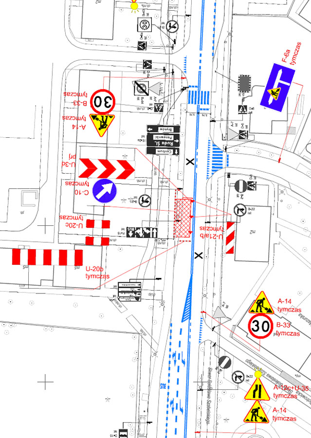 Opracowujemy projekty tymczasowej organizacji ruchu w związku z prowadzeniem robót w pasie drogowym oraz w jego bezpośrednim sąsiedztwie.